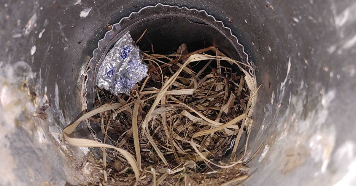 In most cases, the nest isn’t just sitting at the opening. It’s packed inside the vent line, which is why the problem tends to get worse the longer it’s left alone.